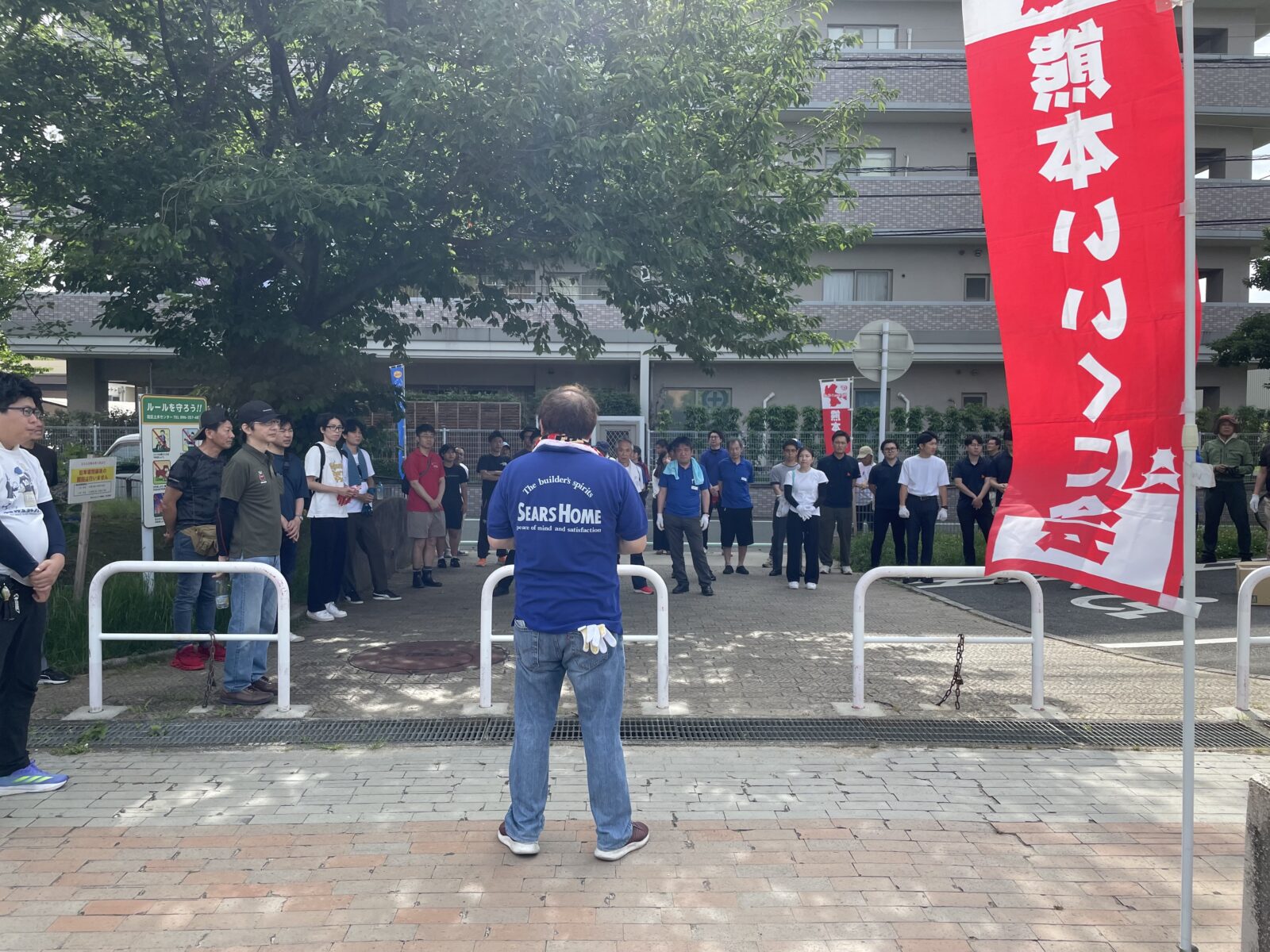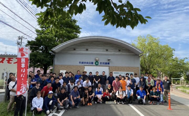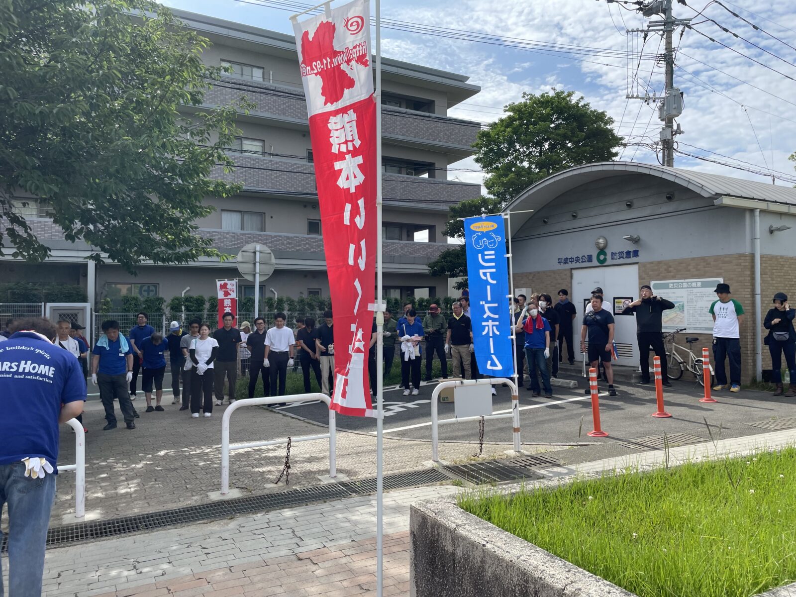 担当企業はシアーズホームグループ様です。いつもたくさんの社員さんが仕事前に駆けつけてくれます。暑い中ありがとうございました。次回はTKU様主催の江津湖クリーン作戦2025に参加します。